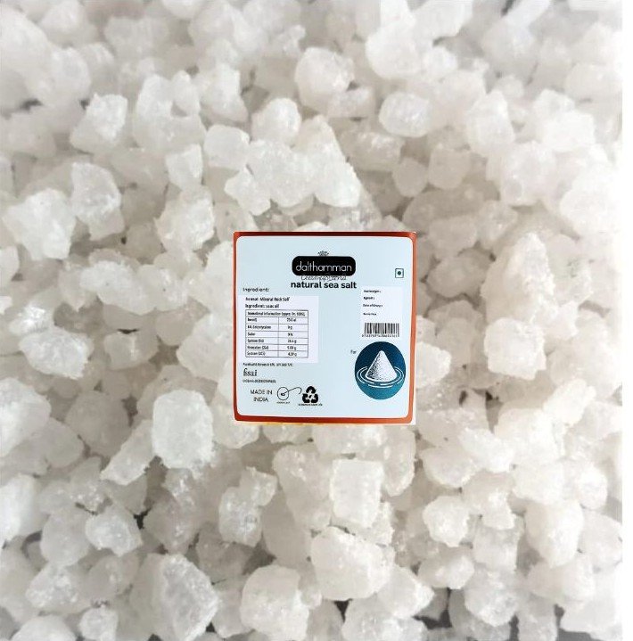 In Vastu Shastra, sea salt is considered a powerful remedy to correct negative energy and enhance positivity in a space. How to Use Sea Salt in Vastu Bowl Placement: Place sea salt in small bowls in the corners of rooms, especially the northeast or southeast corners. Change Weekly: Replace the salt every 7–10 days and discard the old salt outside the home. Mopping with Salt: Add a pinch of sea salt to your floor cleaning water weekly to energetically cleanse the home., Dalthamman Vastu Sea Salt comes in a 900g pack and features coarse white crystals in their non-refined form. Sourced using traditional drying and collection methods, this sea salt is presented as a natural ingredient with a simple, untouched appearance. It is suitable for general-purpose use in homes, whether as part of daily routines or traditional practices. The coarse crystal structure offers a raw texture that can be used in various non-culinary settings. It is often placed in bowls, corners, or entrances, and used in personal or cultural settings where dry salt is traditionally included. Users may incorporate it into rituals, home arrangements, or as a component of routine space maintenance practices. This product can be stored in open or closed containers depending on the intended use. Its naturally white appearance gives it a clean, neutral look that blends easily into different home environments. The crystals can also be added to decorative containers, natural blends, or other arrangements where dry ingredients are displayed or used. Packaged in a resealable pouch, the 900g quantity provides an ample amount for regular or repeated use. The resealable feature helps in organizing and storing the salt securely between uses and supports easy portioning when needed. Dalthamman Vastu Sea Salt may also be included in general household practices, including soaking mixes, room arrangements, or interior displays where traditional dry materials are used.